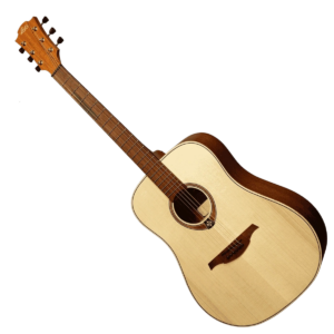 The Lag T70A-NAT auditorium shape guitar from the celebrated T70 Series is designed with inspiration from the beauty of Southern France, offering a unique blend of aesthetics and tonal performance. With features like solid spruce top, Swietenia Mahogany back and side, BrankoWood fingerboard, and black tuning pegs, this model caters to musicians at all levels. The auditorium shape offers a versatile playing experience, making it a wonderful choice for anyone looking to explore the world of Lag Guitars.