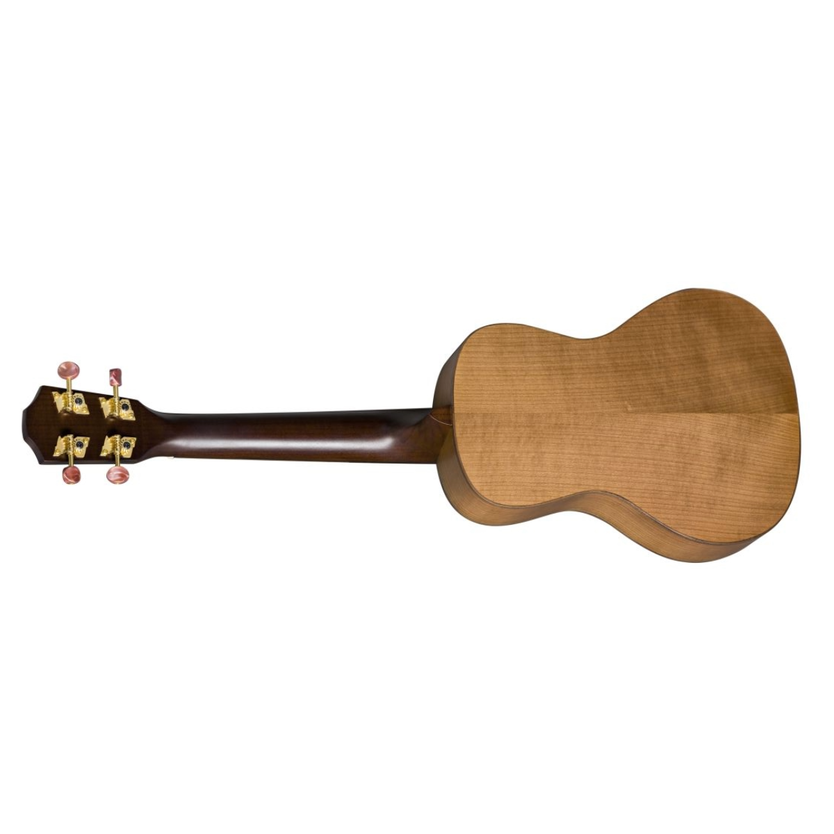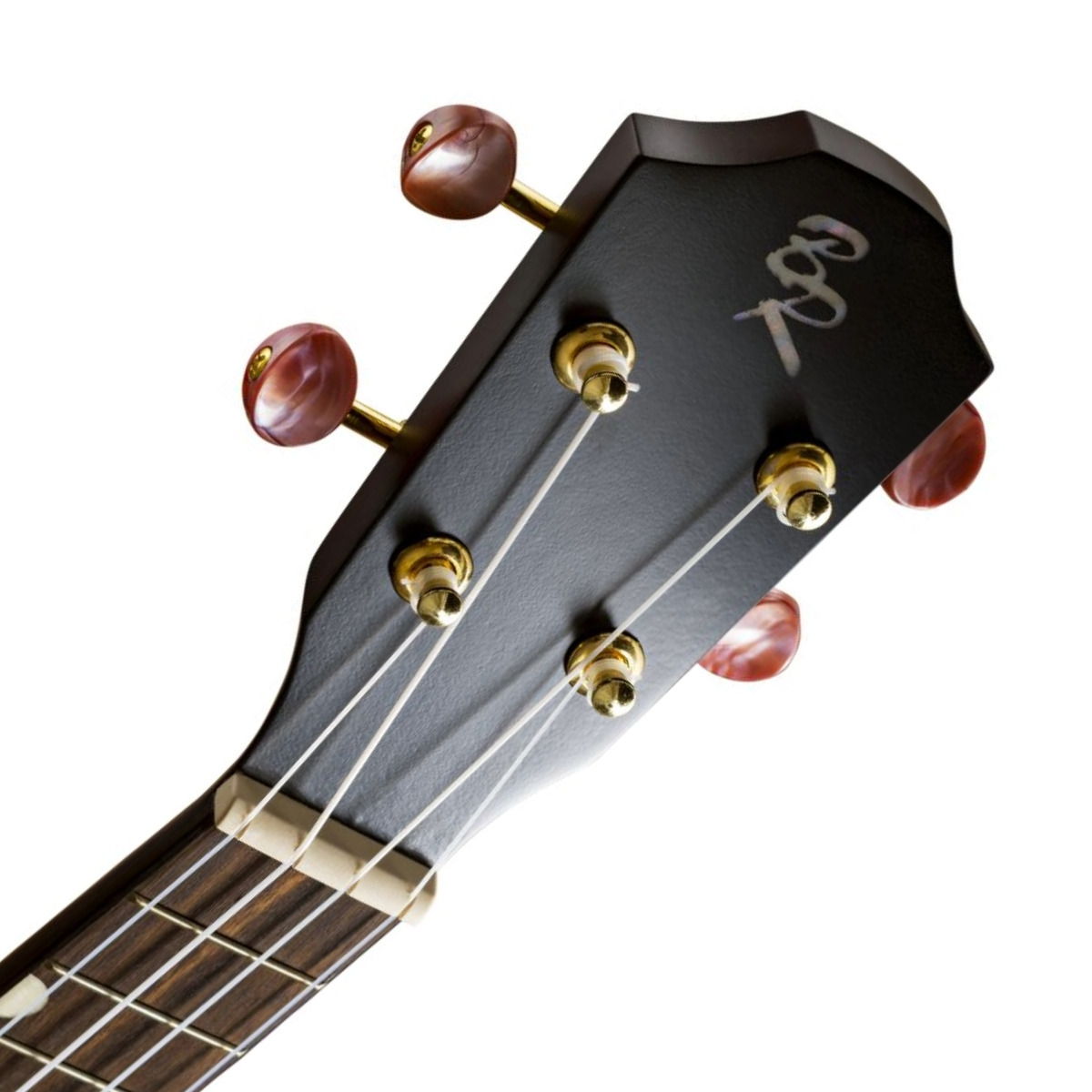 Crafted from sustainably sourced rECOtimber, this Baton Rouge Eco Cherry Concert Ukulele pairs a solid German spruce top with solid cherry back and sides for a warm, resonant tone. A maple neck and dark eucalyptus fingerboard with mother-of-pearl inlays ensure smooth playability, while walnut bindings and a natural satin open-pore finish highlight its organic beauty. Outfitted with Nubone nut and saddle, Aquila Nylgut strings, and gold open-gear tuners with brown buttons, this instrument blends fine craftsmanship with reliable performance.