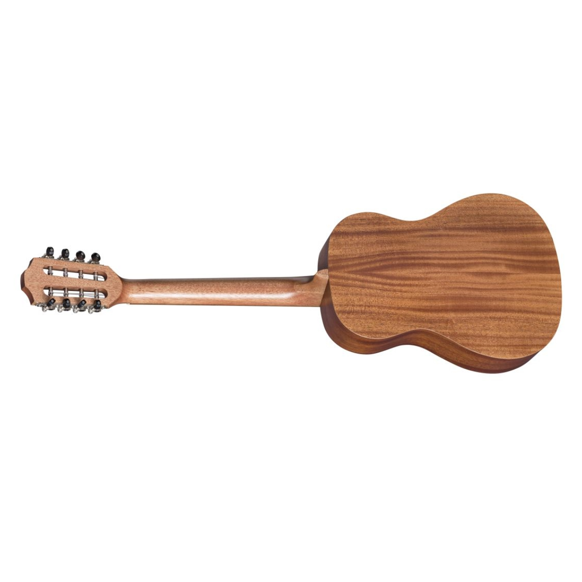 The V2 8-String Baritone Ukulele delivers a rich, full voice with doubled lower strings (dD-gG-hh-ee) for extra depth and shimmer. Built with a mahogany body and nato neck, it features a walnut fingerboard and bridge, 18 frets, and a comfortable 510 mm scale length with a 39 mm nut width. A natural satin open-pore finish, lasered sun rosette, and chrome open-gear tuners with black buttons add refined style. Equipped with Nubone nut and saddle and strung with Aquila Nylgut strings, this instrument blends warmth, clarity, and projection for players seeking a unique baritone sound.
