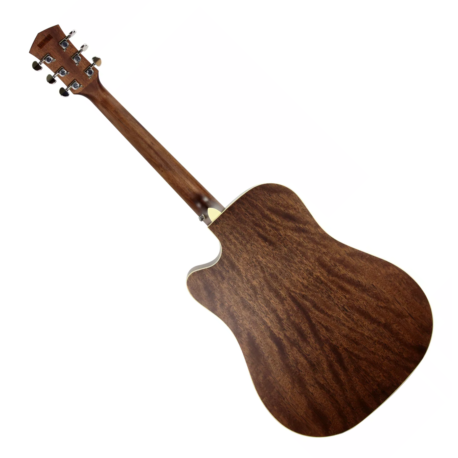 The Cort PURE-DCF NS is a premium all-solid acoustic-electric guitar built for players who demand exceptional tone and playability. Featuring a solid Sitka spruce top paired with solid mahogany back and sides, this dreadnought-cutaway model delivers a rich, balanced sound with powerful projection and warm tonal depth. The mahogany neck and ovangkol fingerboard provide smooth, comfortable playability across the entire fretboard, while the natural satin UV finish enhances resonance and allows the wood’s beauty to shine through. Designed for both stage and studio, this guitar combines timeless acoustic character with modern reliability.