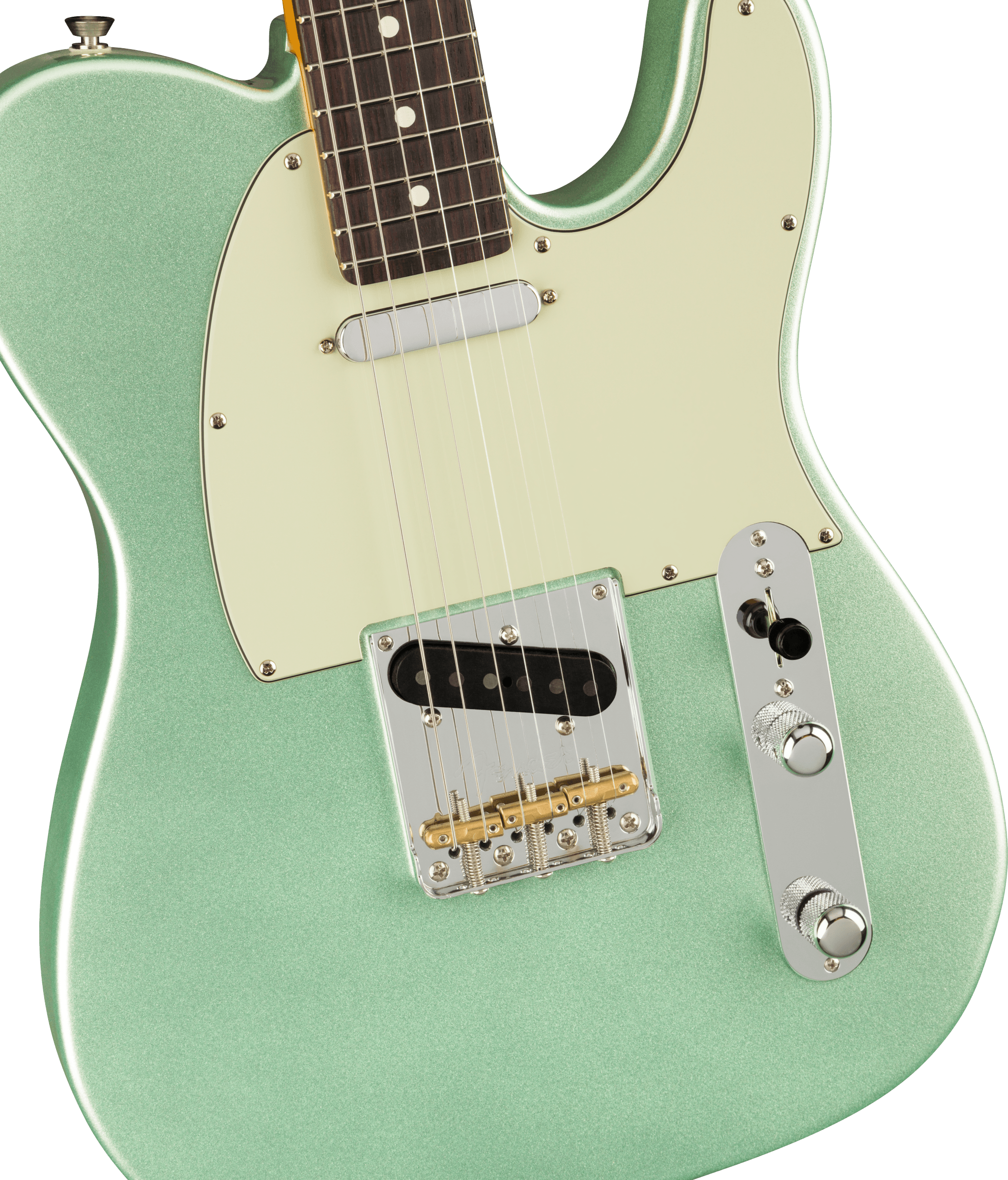 American Pro II Tele: Rosewood neck, Mystic Surf Green finish. Experience legendary tone & playability. Own a piece of iconic Fender history!