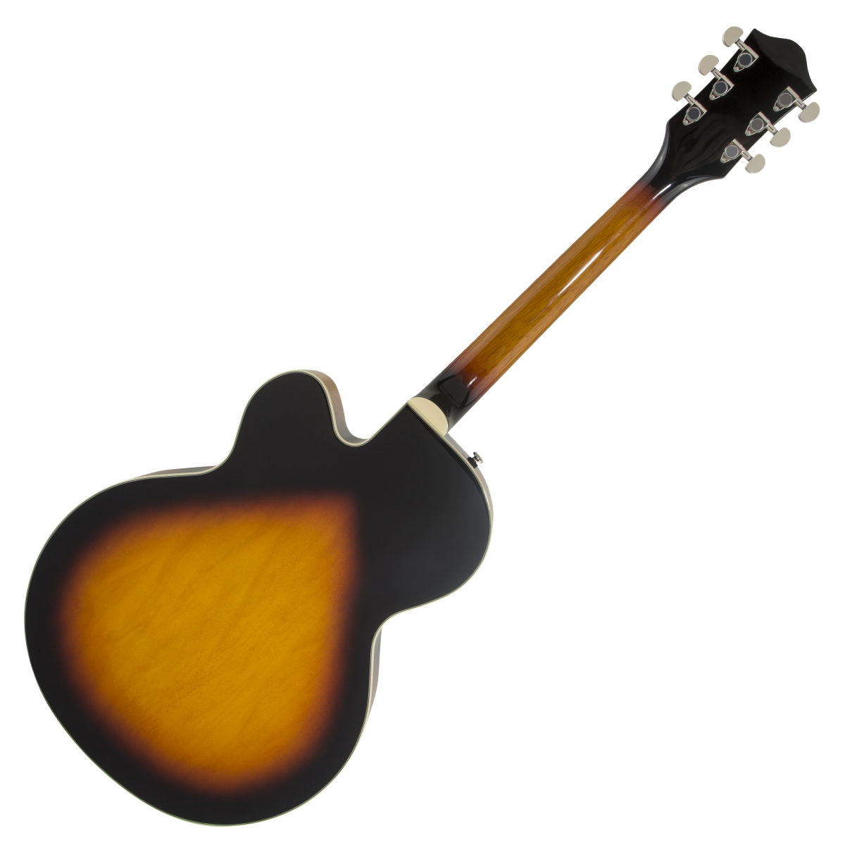 - Fully hollow build with single-cutaway arched maple body for rich fullness, deep resonance and “big-body sound”