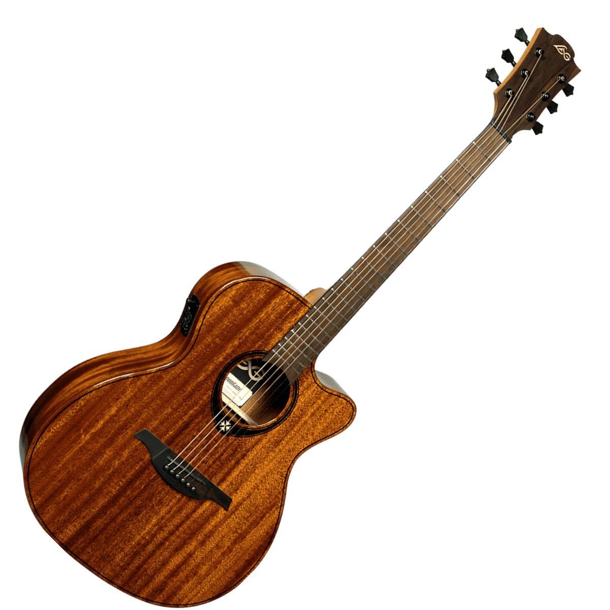LAG T98 ACE: Auditorium cutaway electro-acoustic guitar. Excellent for versatile players seeking amplified performance capabilities.