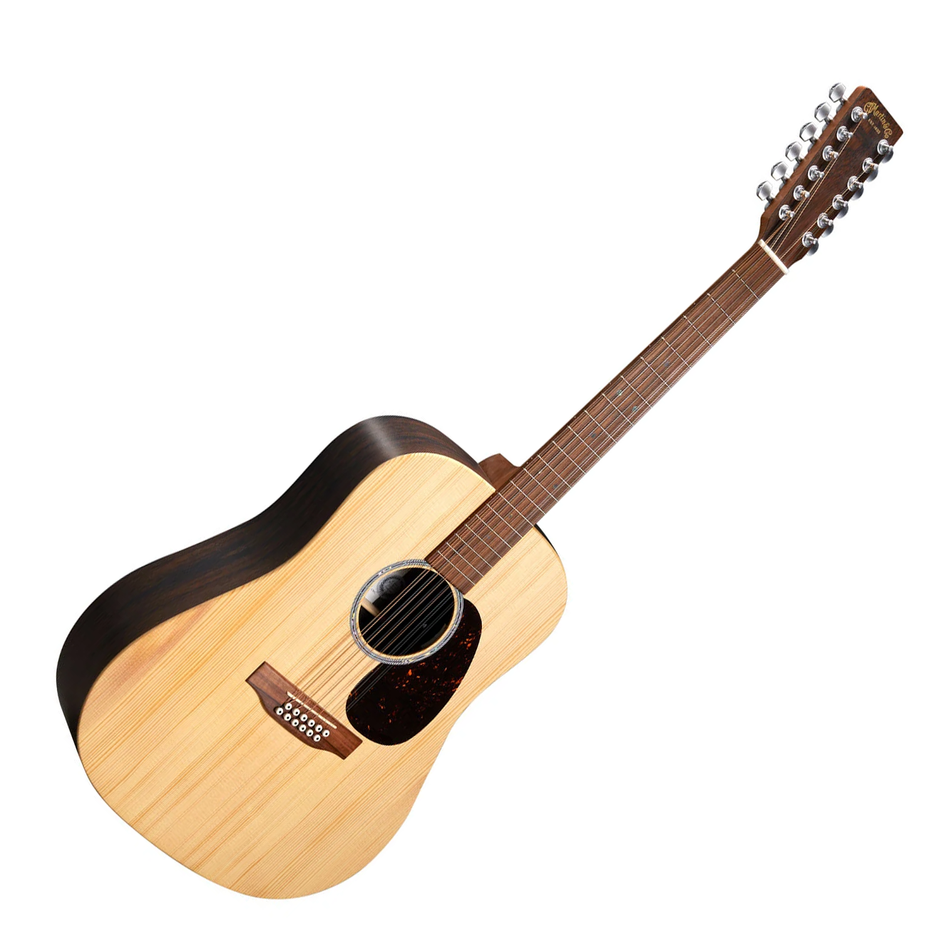The X Series is made to play. The acoustic-electric D-X2E Brazilian 12-String features a hand-rubbed satin spruce top with an elegant abalone pattern rosette and eye-catching Brazilian rosewood pattern high-pressure laminate (HPL) back and sides for added durability and looks, without sacrificing that classic Martin tone. Playability enhancements include a thinner fingerboard with a gently beveled comfort edge and refined string spacing, and a modernized bridge contour for a smooth and comfortable playing experience. It also features a select hardwood neck, fingerboard, and bridge for improved sound and sustain, and Martin E-1 electronics with a built-in chromatic tuner and volume, tone, and phase controls. The D-X2E Brazilian 12-String’s iconic Dreadnought body size is loud and projective with strong bass, lending itself to any genre and experience level, while the extra strings provide a unique layer of chime, tone, and texture.