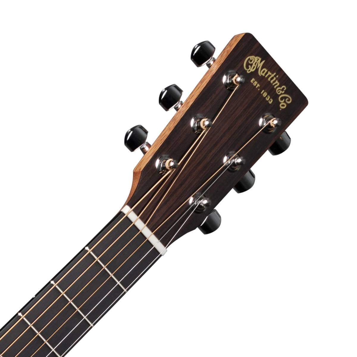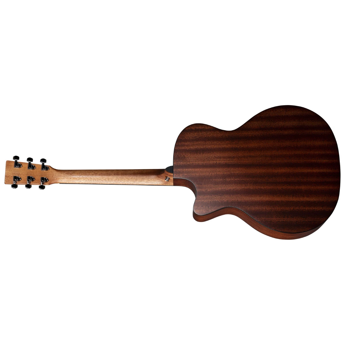 With a gorgeous glossed spruce top and sapele back and sides, this solid wood Grand Performance model with cutaway is a great sounding guitar at an affordable price. New to this model are stunning mother-of-pearl pattern fingerboard and rosette inlays with a multi-stripe rosette border. It has an FSC® Certified Richlite® fingerboard and bridge, satin finish body, and a hand-rubbed neck finish. Also new to this model is the Martin E-1 electronics package with a built-in soundhole tuner so you can tune up any time without using a pedal. This guitar comes with a Premium Soft Shell Case so it is Road-ready to join you on all of your adventures!