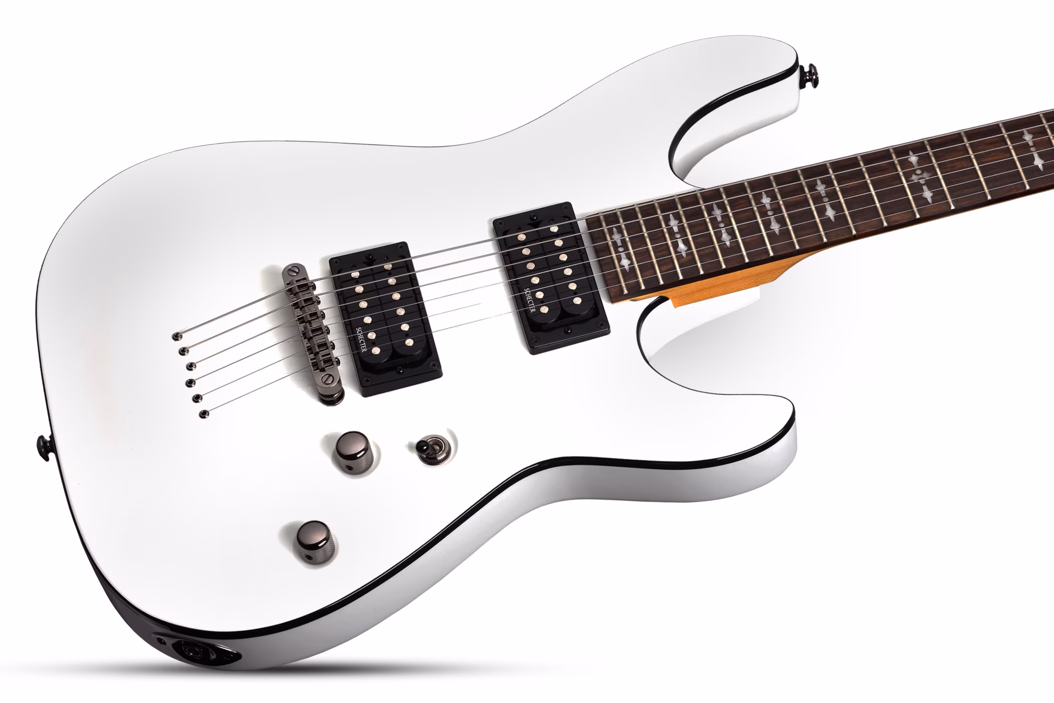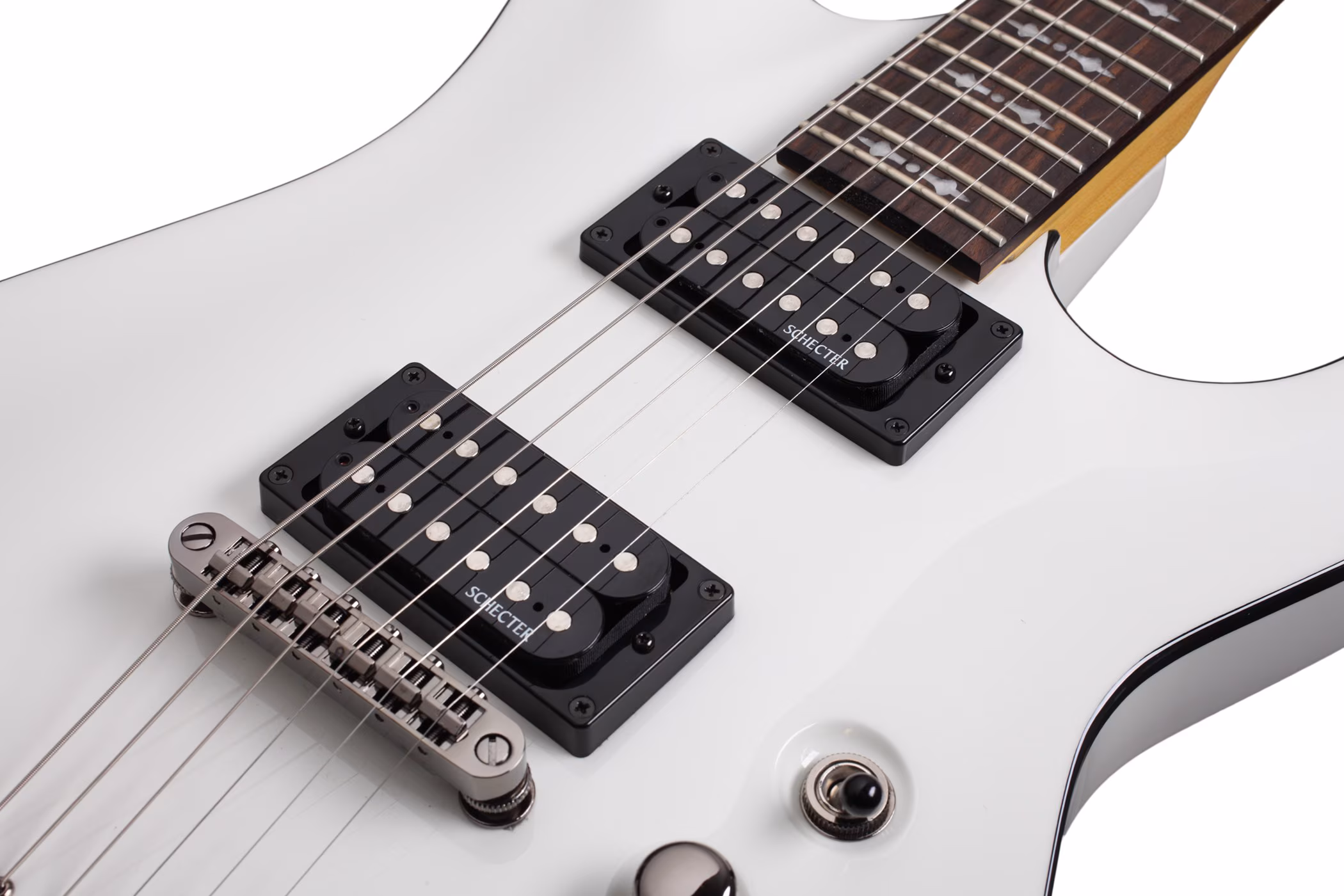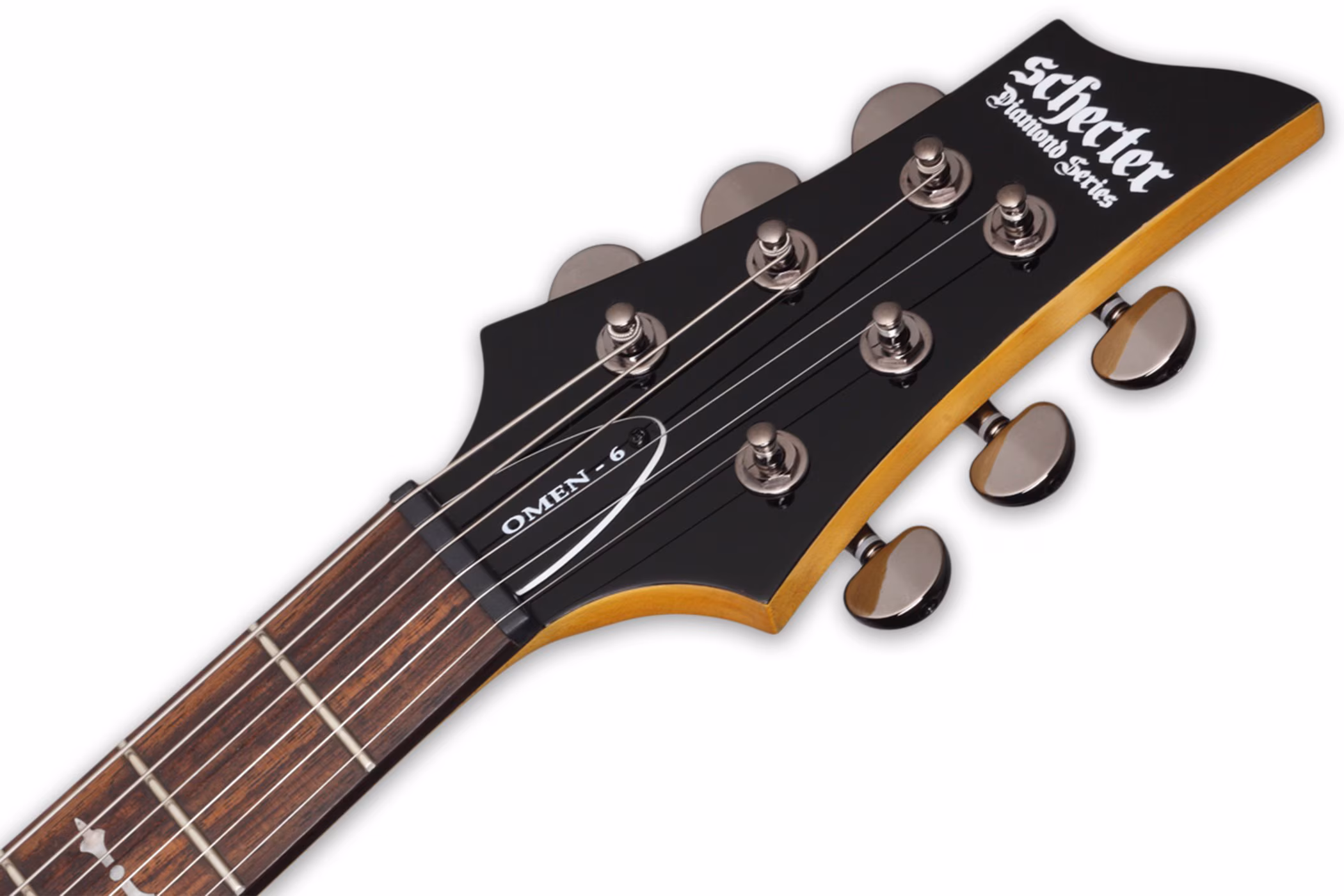 The Omen series models are the perfect introduction to the heavy world of Schecter. A basswood body, a bolt-on maple neck with a rosewood fretboard, 24 X-Jumbo frets and two powerful Schecter Diamond Plus humbuckers – everything a metal heart desires.