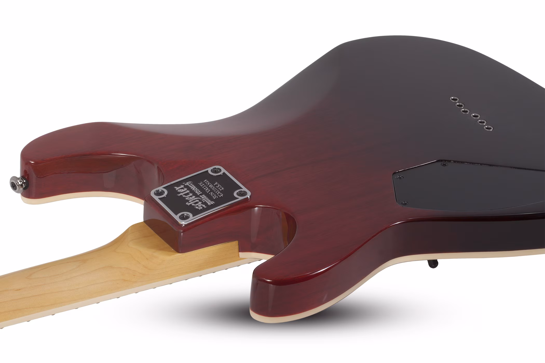 The Omen Extreme models enhance the Omen series with stunning quilted maple tops. The bolt-on maple neck with a rosewood fretboard and a Thin C neck profile enable comfortable playability. There are 24 X-Jumbo frets on the fretboard and two Schecter Diamond Plus humbuckers on board.