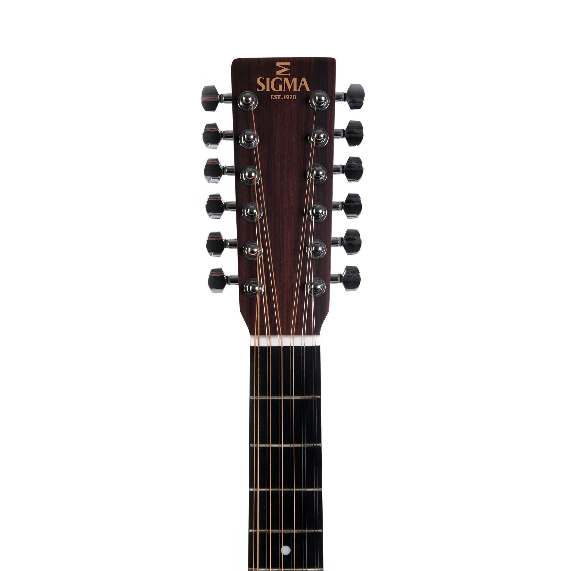 The Sigma SIG-DM12E+ is a beautifully crafted 12-string acoustic guitar that offers a rich, full-bodied sound ideal for musicians seeking to enhance their tonal palette. Built with a solid Sitka spruce top and mahogany back and sides, this guitar delivers a dynamic, balanced sound with excellent projection. The dreadnought body shape ensures robust bass tones and crystal-clear highs, making it perfect for both strumming and fingerpicking styles. Its natural finish showcases the wood’s grain, adding to its classic, timeless aesthetic.