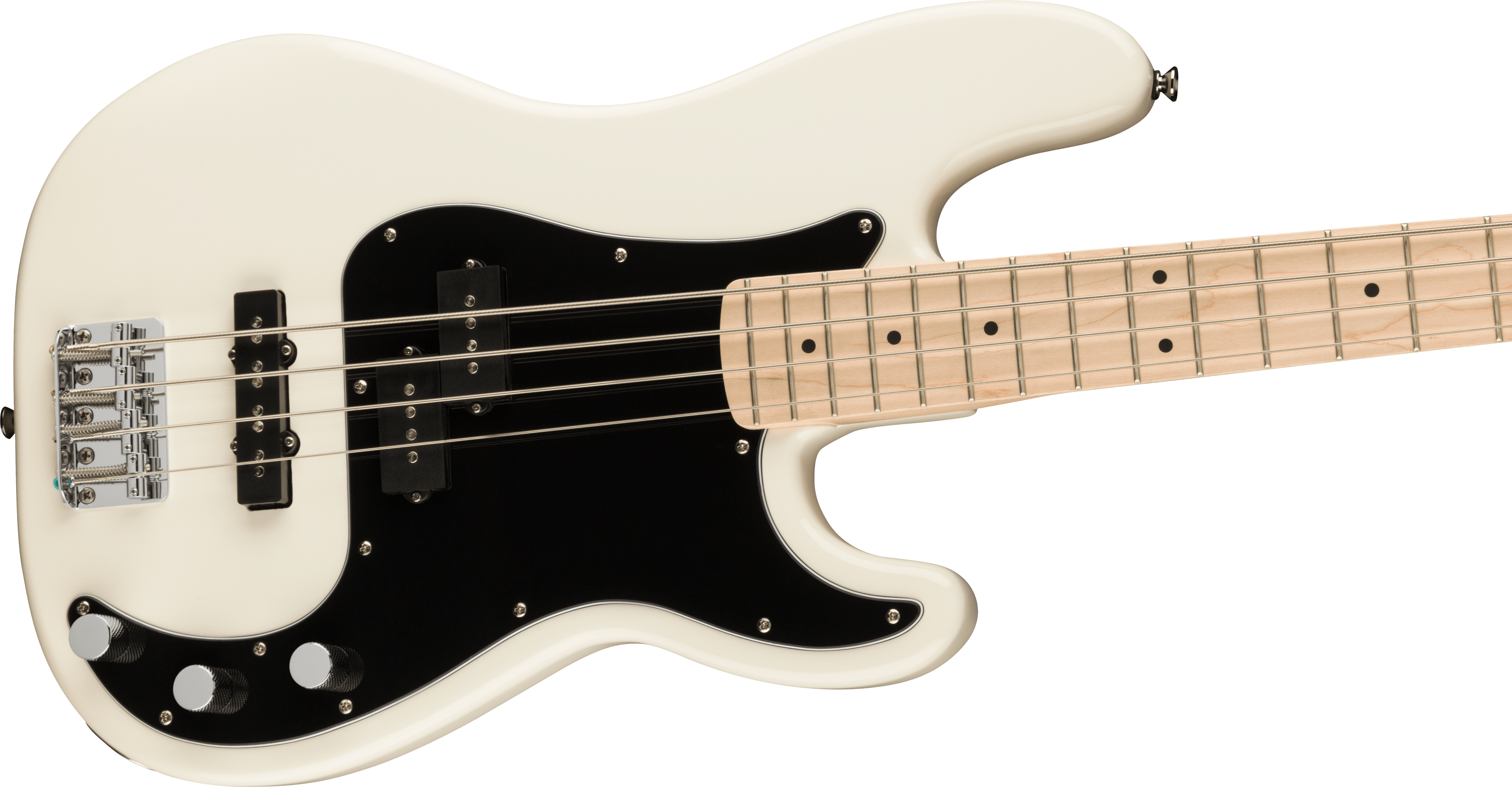 The Squier Affinity Action J Bass in Olympic White delivers classic tone and smooth playability. A great entry-level bass for aspiring musicians.