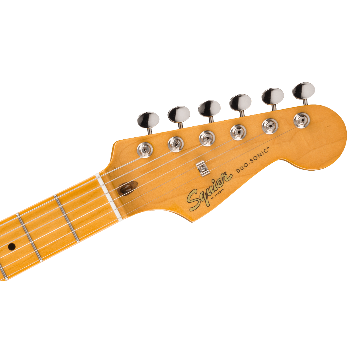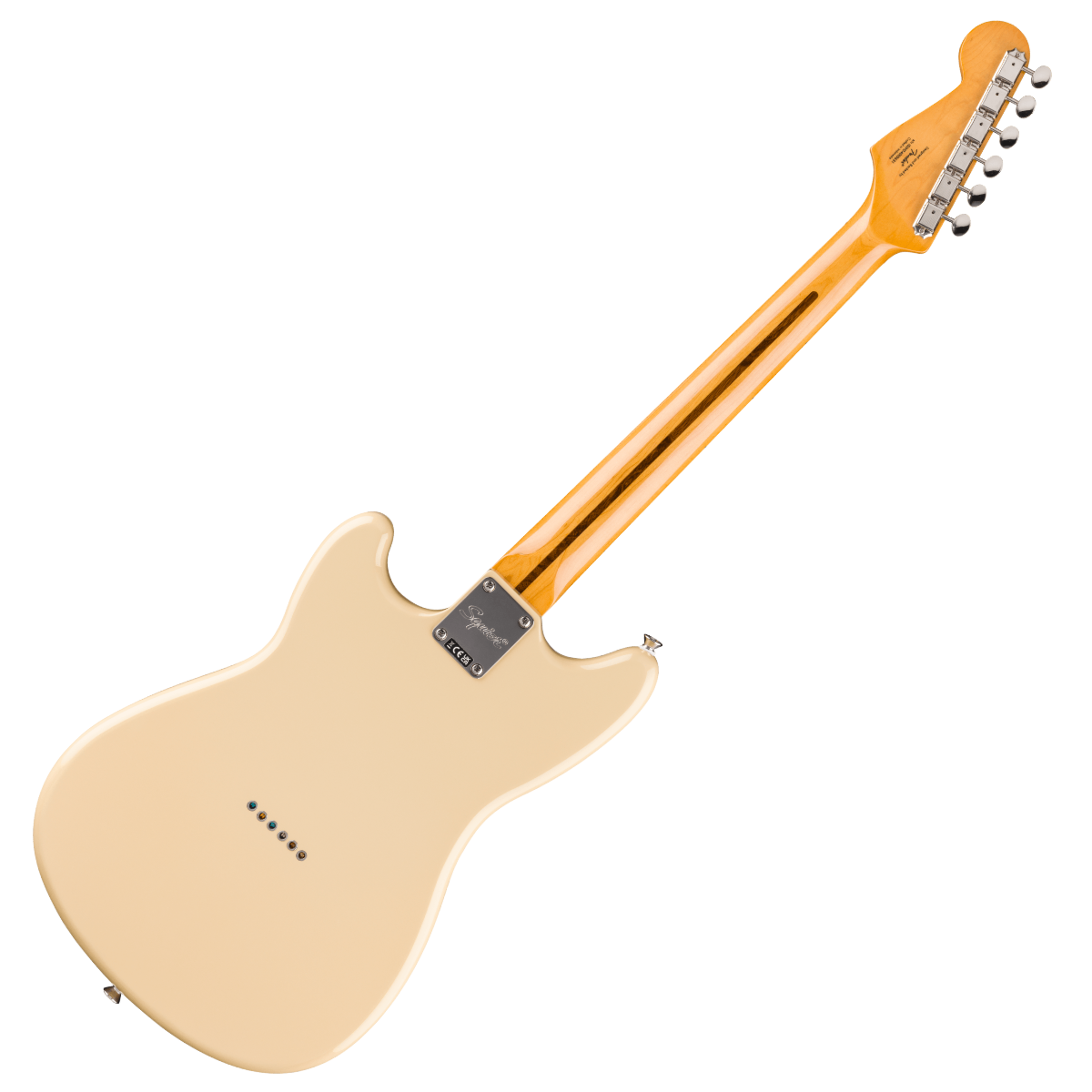 Squier Due Sonic, Classic Vibe, FSR in Desert Sand with Anodized Gold Pickguard. Electric guitar.