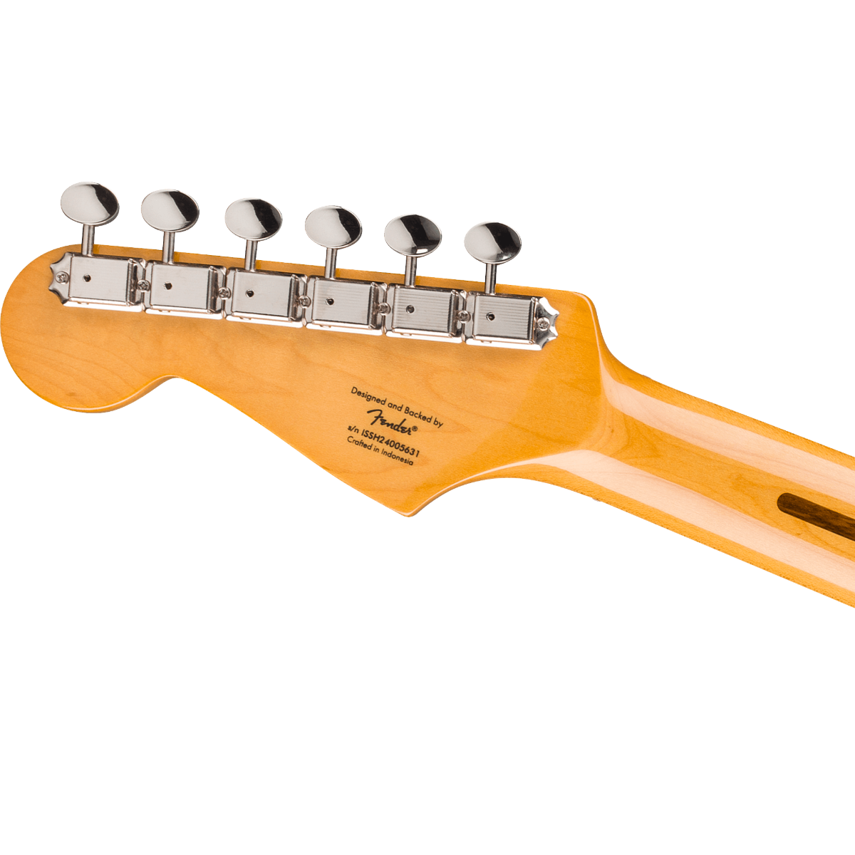 With a comfortable compact body size and short 24″ scale length, the Classic Vibeâ„¢ Duo-Sonicâ„¢ HS punches above its weight with a Fender Designedâ„¢ single coil neck and humbucking bridge pickup for superior tone. The hardtail bridge provides stable intonation and its string-through-body design creates optimal body resonance. This throwback Squier model also features period-inspired headstock markings, rich-looking nickel-plated hardware and a slick vintage-tinted gloss neck finish for an old-school vibe.