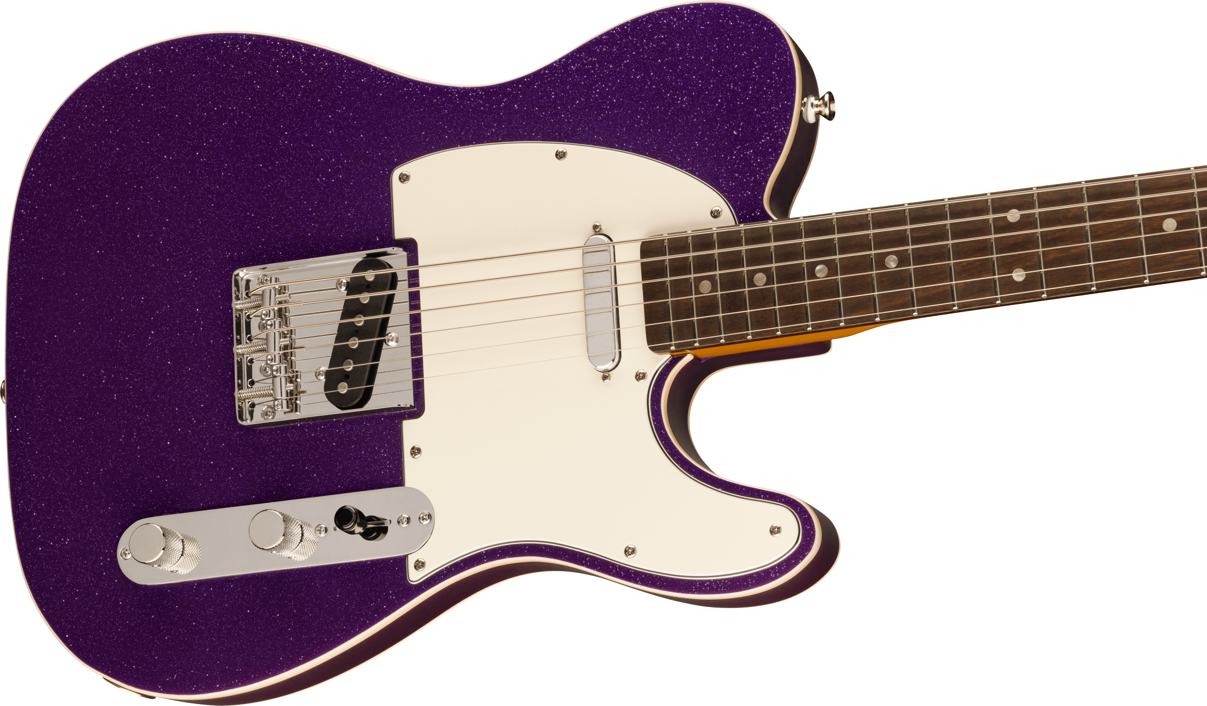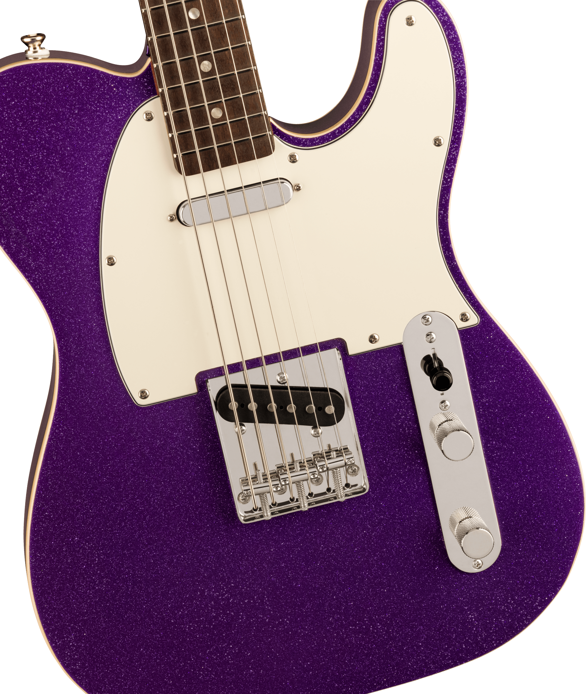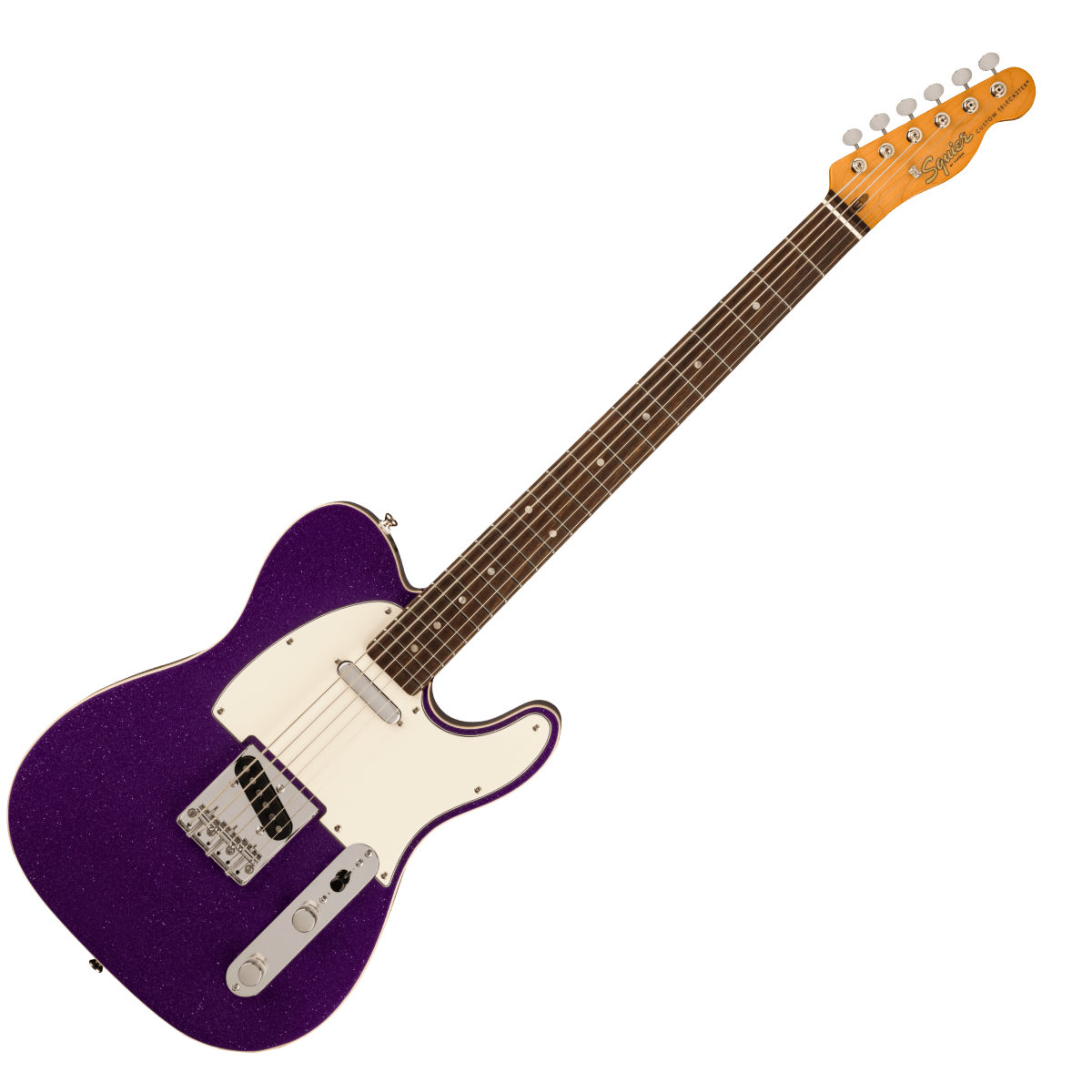 The Squier FSR Baritone Telecaster in Purple Sparkle delivers extended range and classic Tele tone. A unique instrument for adventurous players.