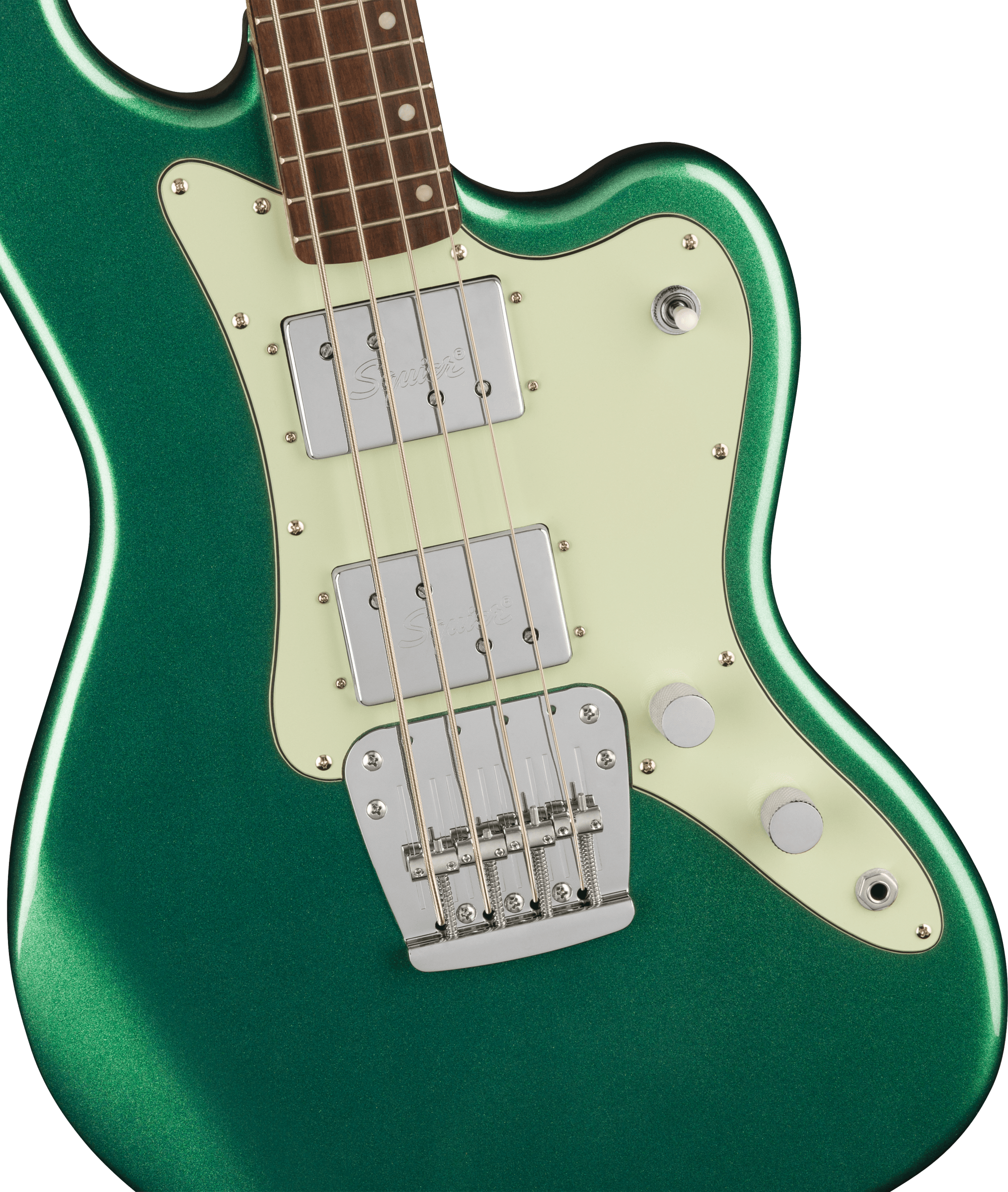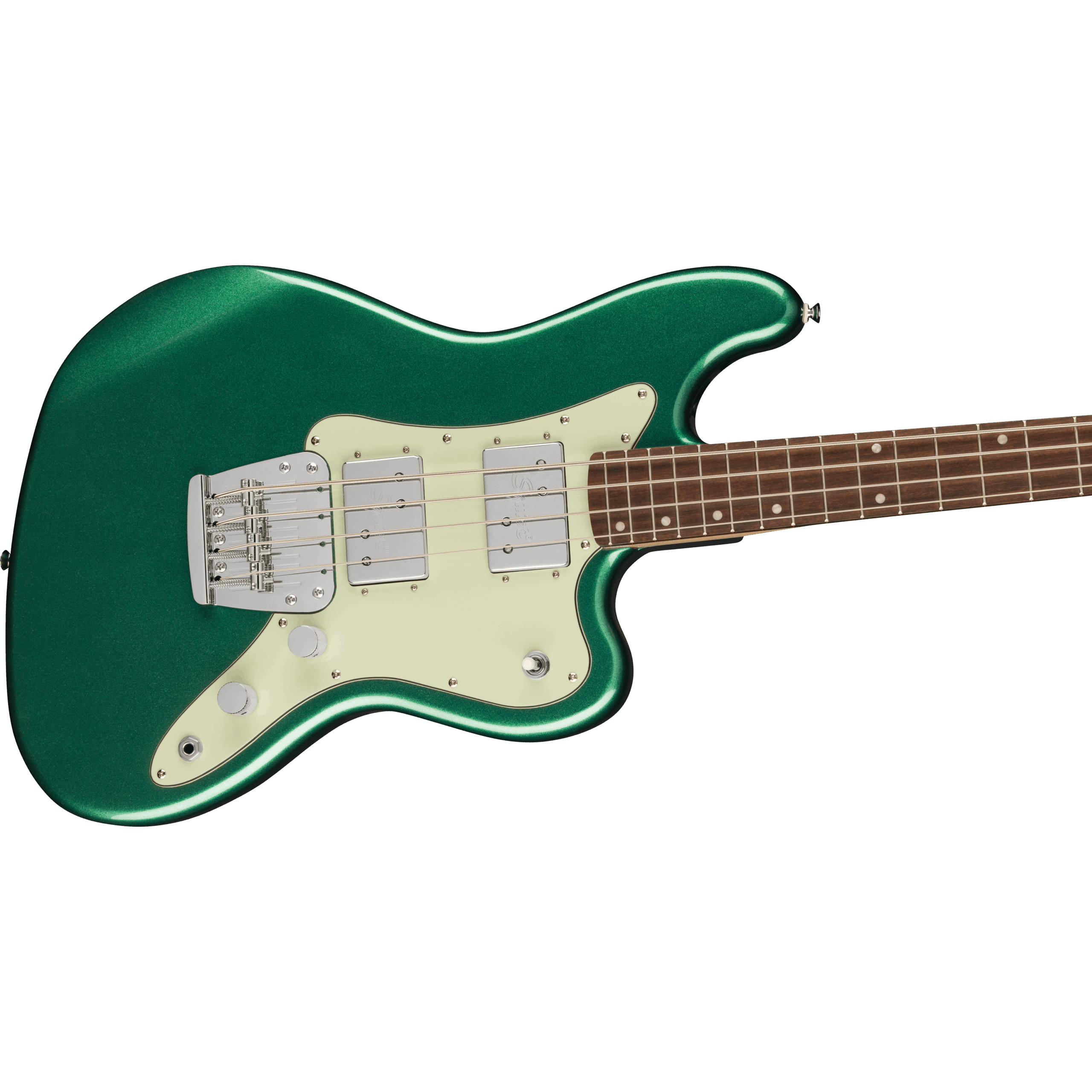 The Paranormal Rascalâ„¢ Bass HH rewrites the playbook of electric bass design with a greatest-hits-list of features from several eccentric 1960s-era Fender® bass models. Combining the offset body shape of the Fender Bass VI model, the unique headstock shape from the Fender Coronado Bass, the string-through-body bridge from the Mustang® Bass, and punchy dual Fender-Designed Wide Range humbucking bass pickups (HH) with 3-way switching, this model amounts to something truly greater than the sum of its parts. Other player-friendly details of this model include a short and easy-to-play 30″ scale length, a slim and comfortable “C”-shape neck profile, and a gloss neck finish for a slick yet confident feel.