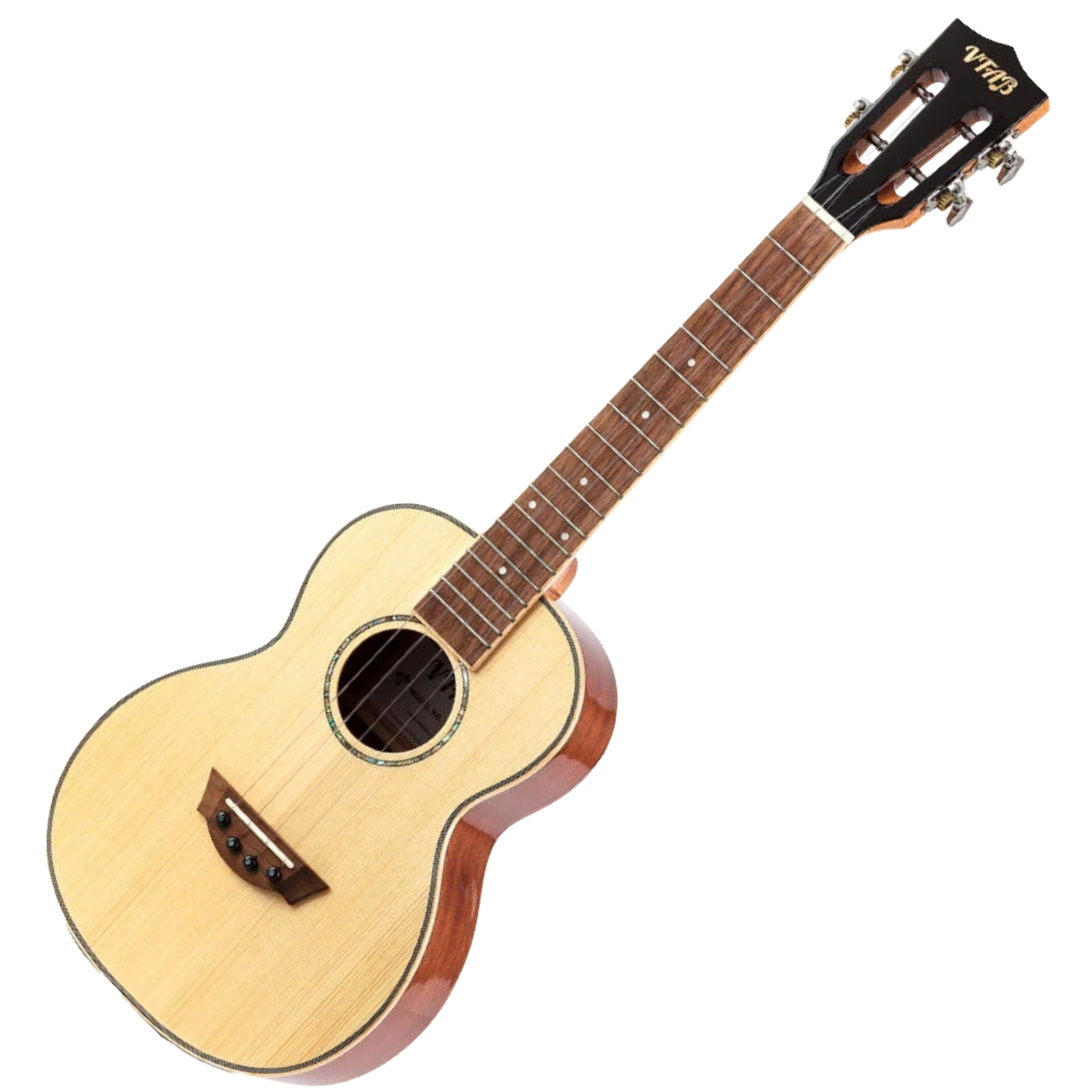 Vtab TSX-S15 soprano ukulele. Features a solid spruce top for enhanced tone and projection. An excellent choice for beginners and experienced players.